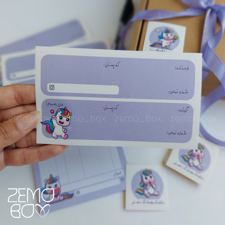 ست بسته بندی یونیکورن بنفش کد ۵۰۰۲ برچسب پستی کارت تشکر فاکتور